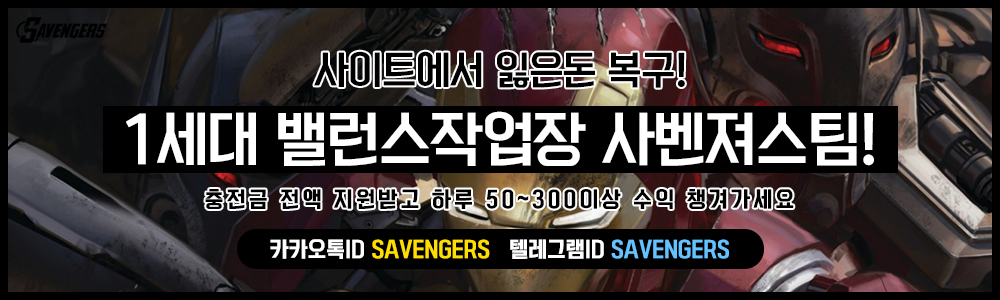 저희 사벤져스팀은 이미 수백건 이상의 작업성공 이력을 가지고 있으며 아직까지도 꾸준하게 밸런스작업을 요청하고 계시는 단골분들이 이를 뒷받침하여 인증해주고 계십니다. 여러분들도 저희 사벤져스팀 과 함께 긴 시간동안 수익을 창출해내실 수 있습니다.