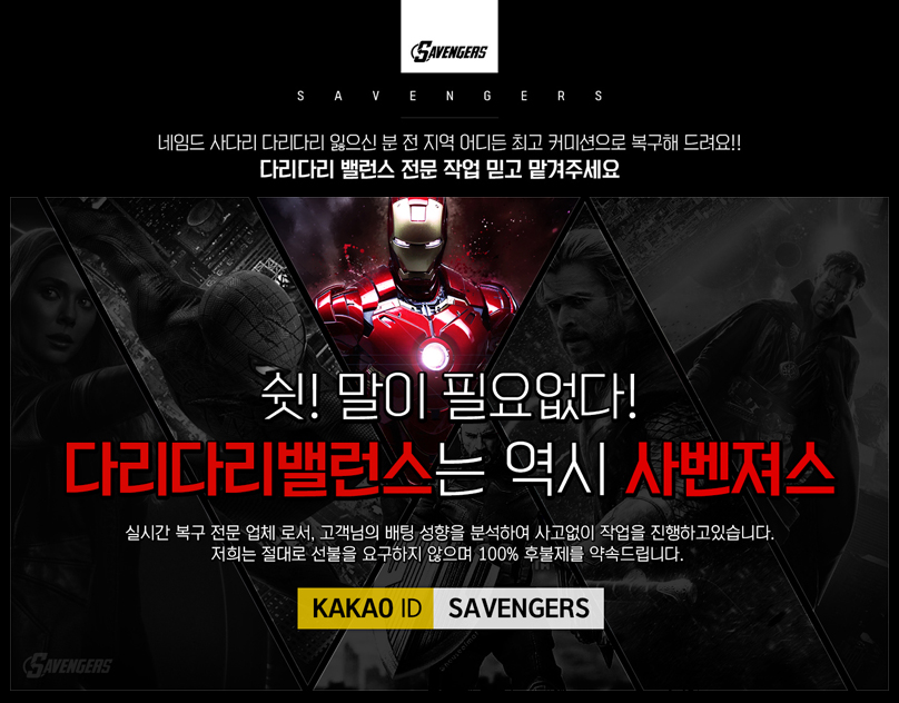 따라서 일부 사기업체에서 수수료나 선입금을 요구하신다면 반드시 피하시고 저희 사벤저스를 찾아주시기 바랍니다.